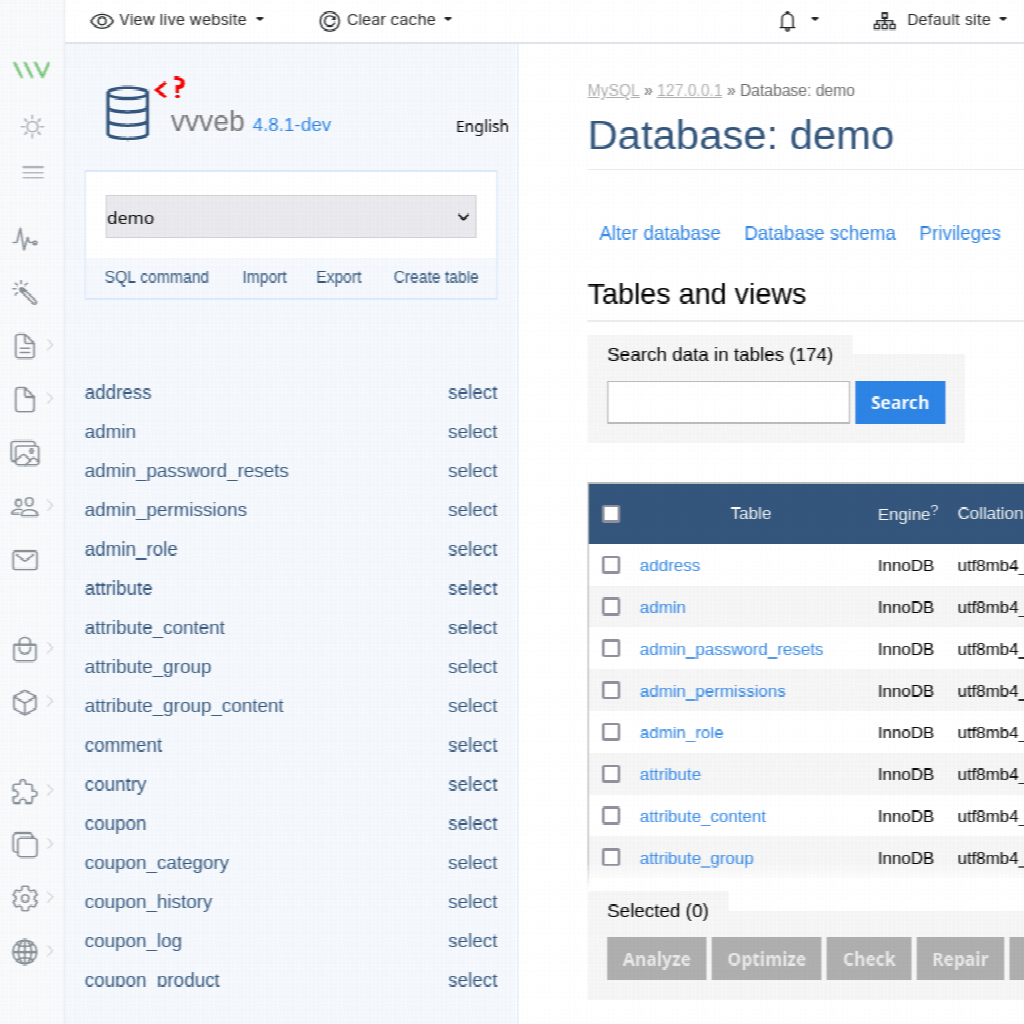 Navigate and edit database tables directly from admin.